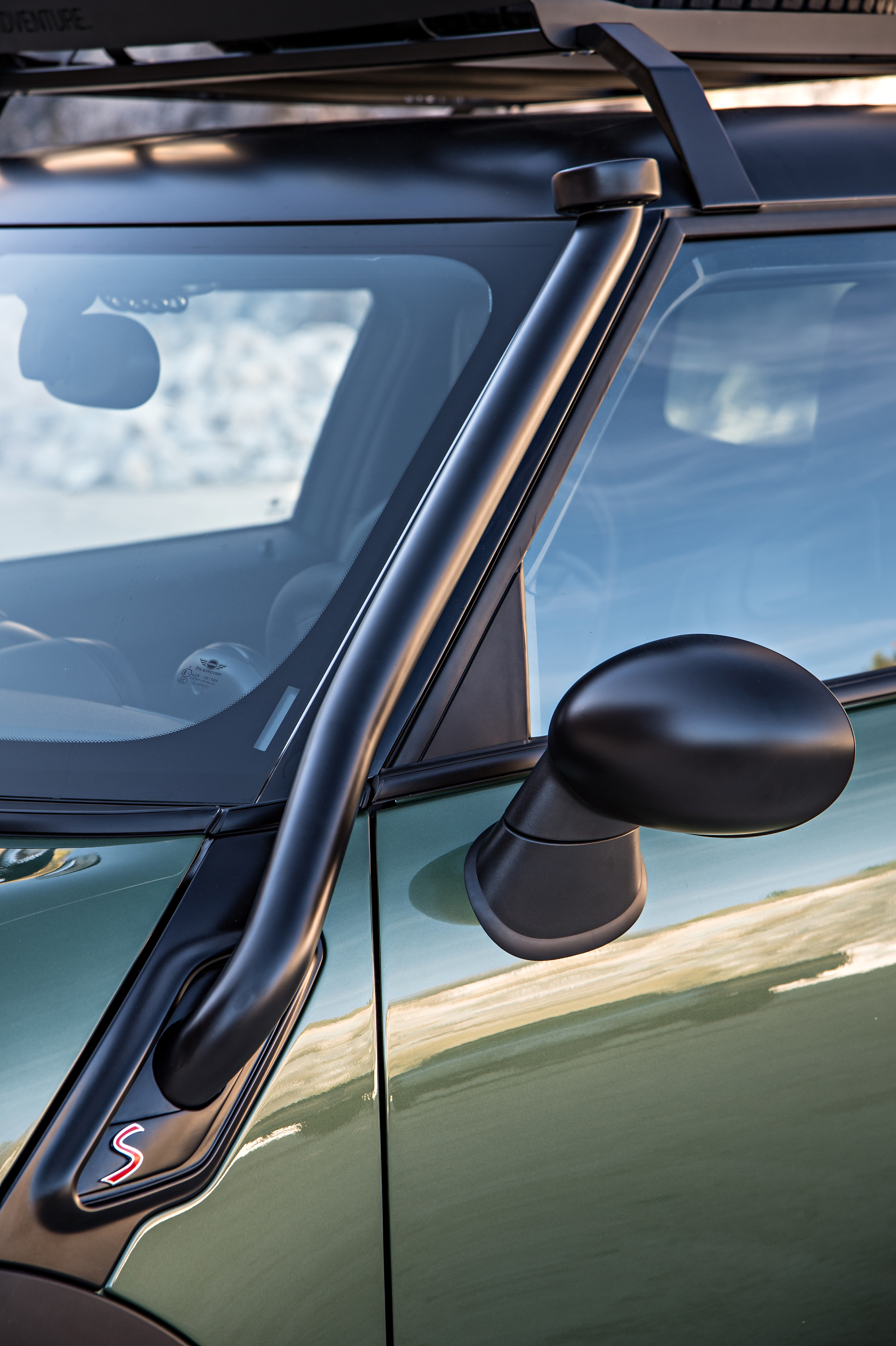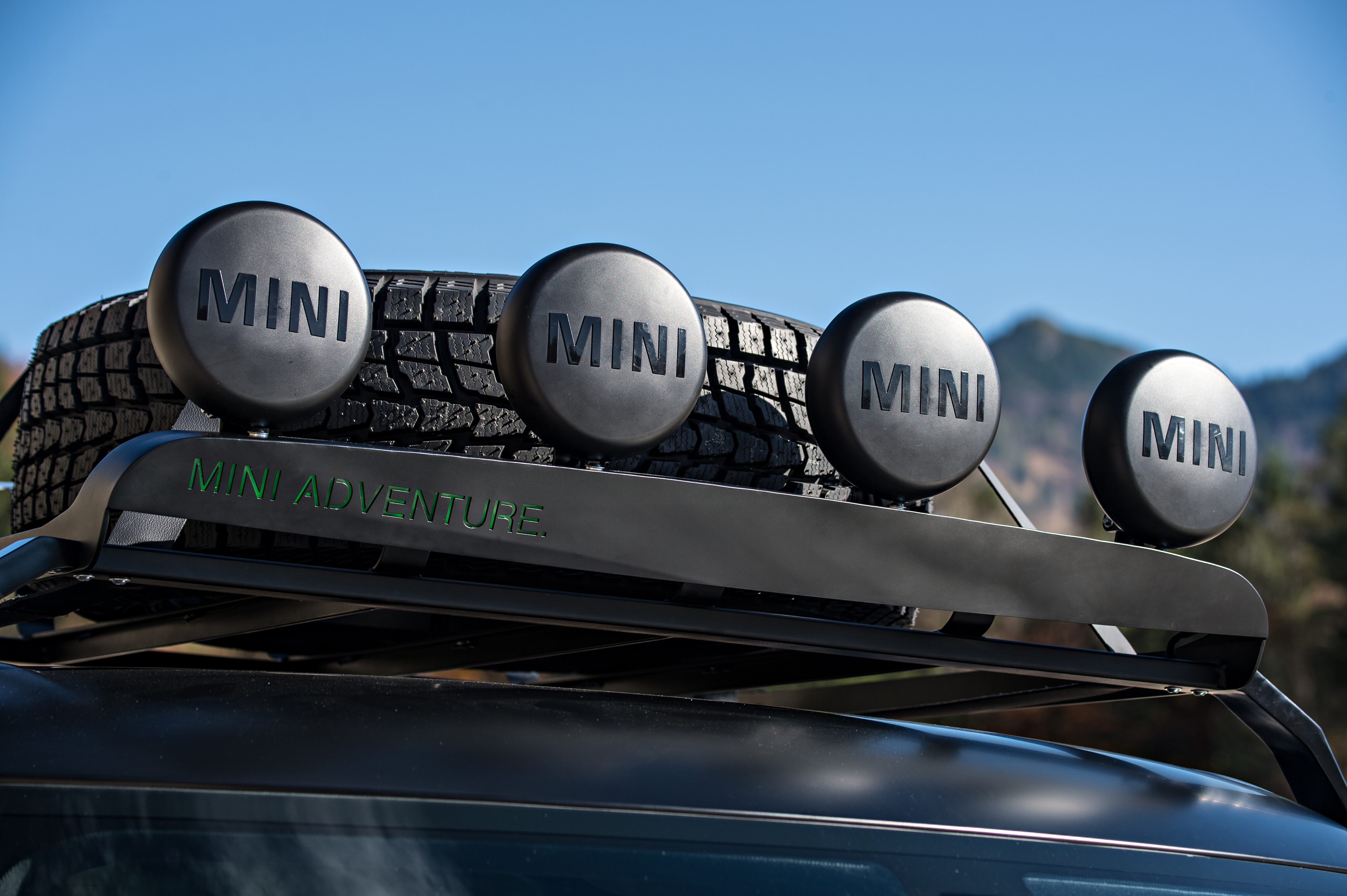 Additional lights mounted on the front cross member of the roof rack optimize visibility at night, while special off-road tyres with wide and deep treads guarantee the perfect traction. The MINI Paceman Adventure features exclusive Jungle Green metallic paintwork.
