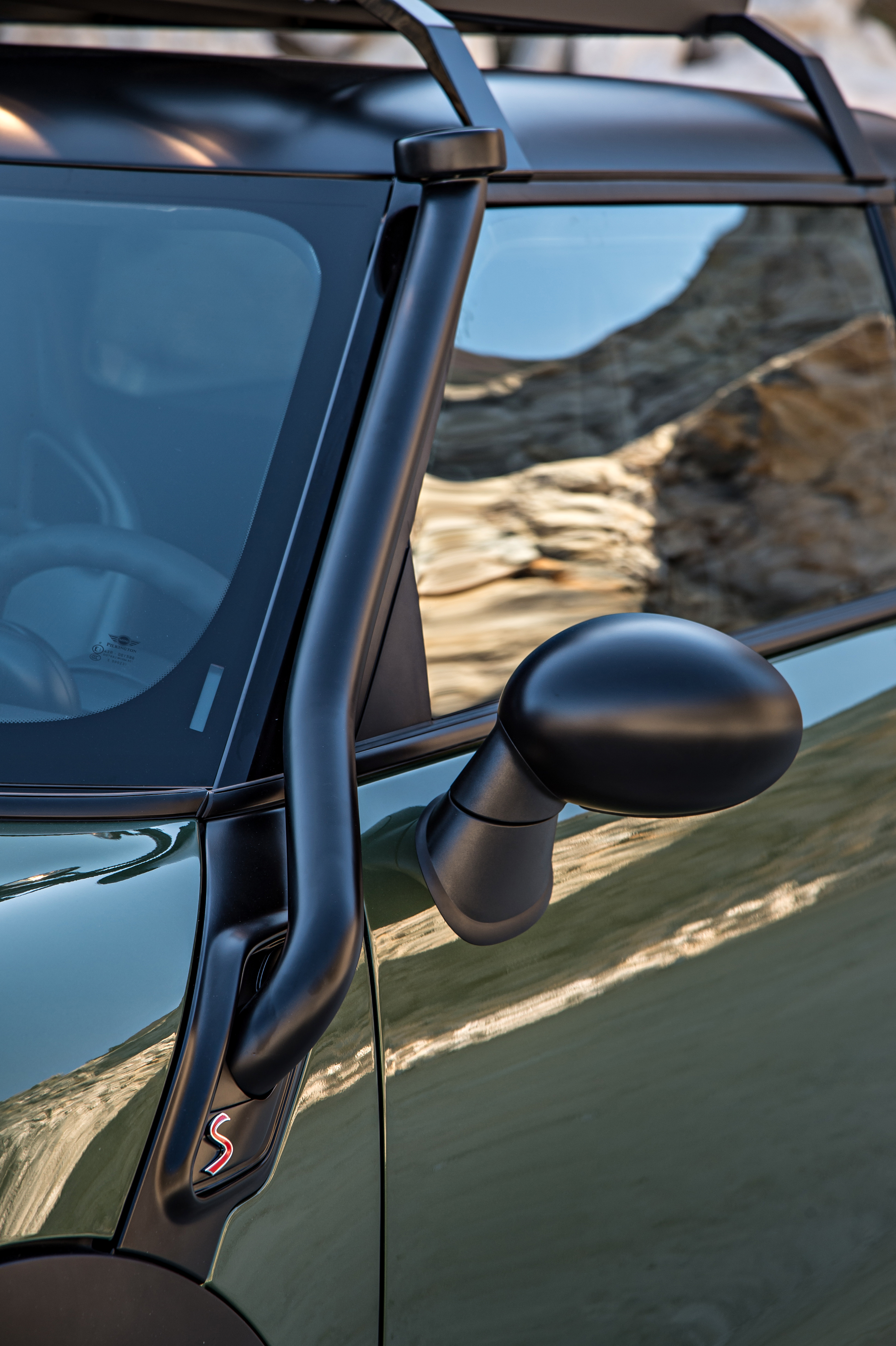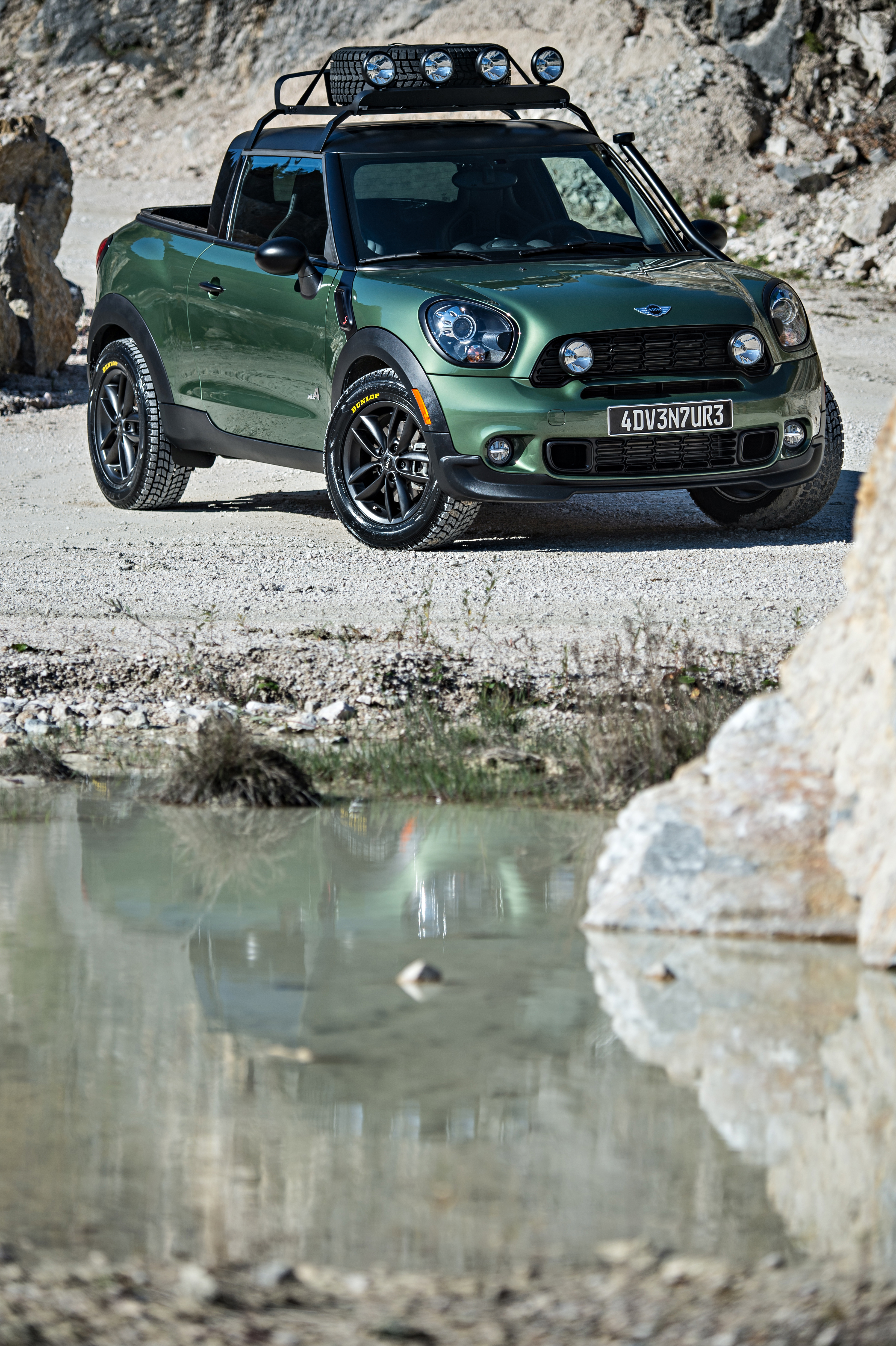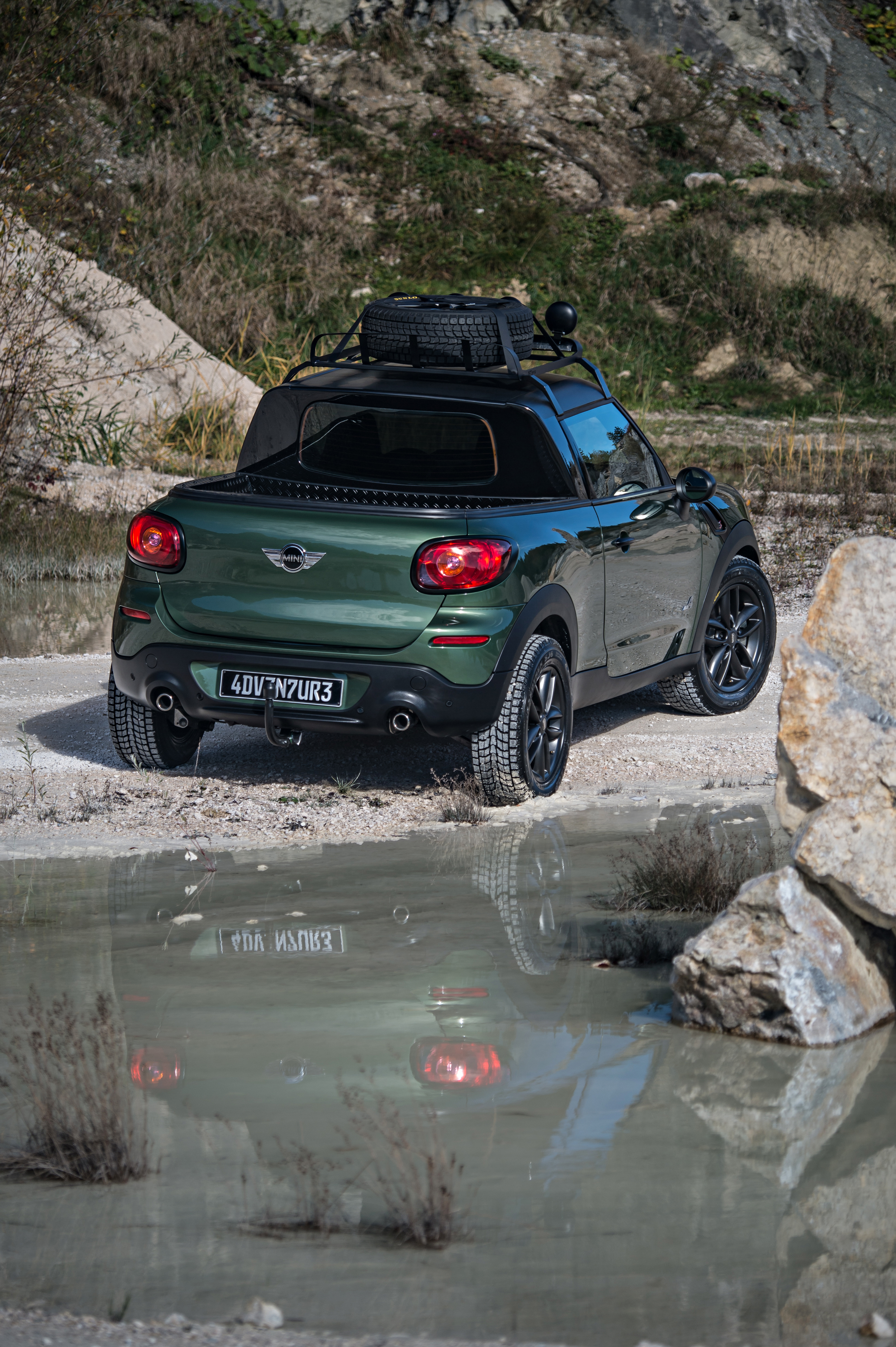 The MINI Paceman Adventure would be suitable for driving on gravel roads, through muddy tracks or on desert trails. The pickup has the typically MINI short overhangs, a modified chassis with extended ground clearance and much higher front and rear clearance ramps. The snorkel-like roof level air intake means that MINI Paceman Adventure could tackle a challenging river crossing.