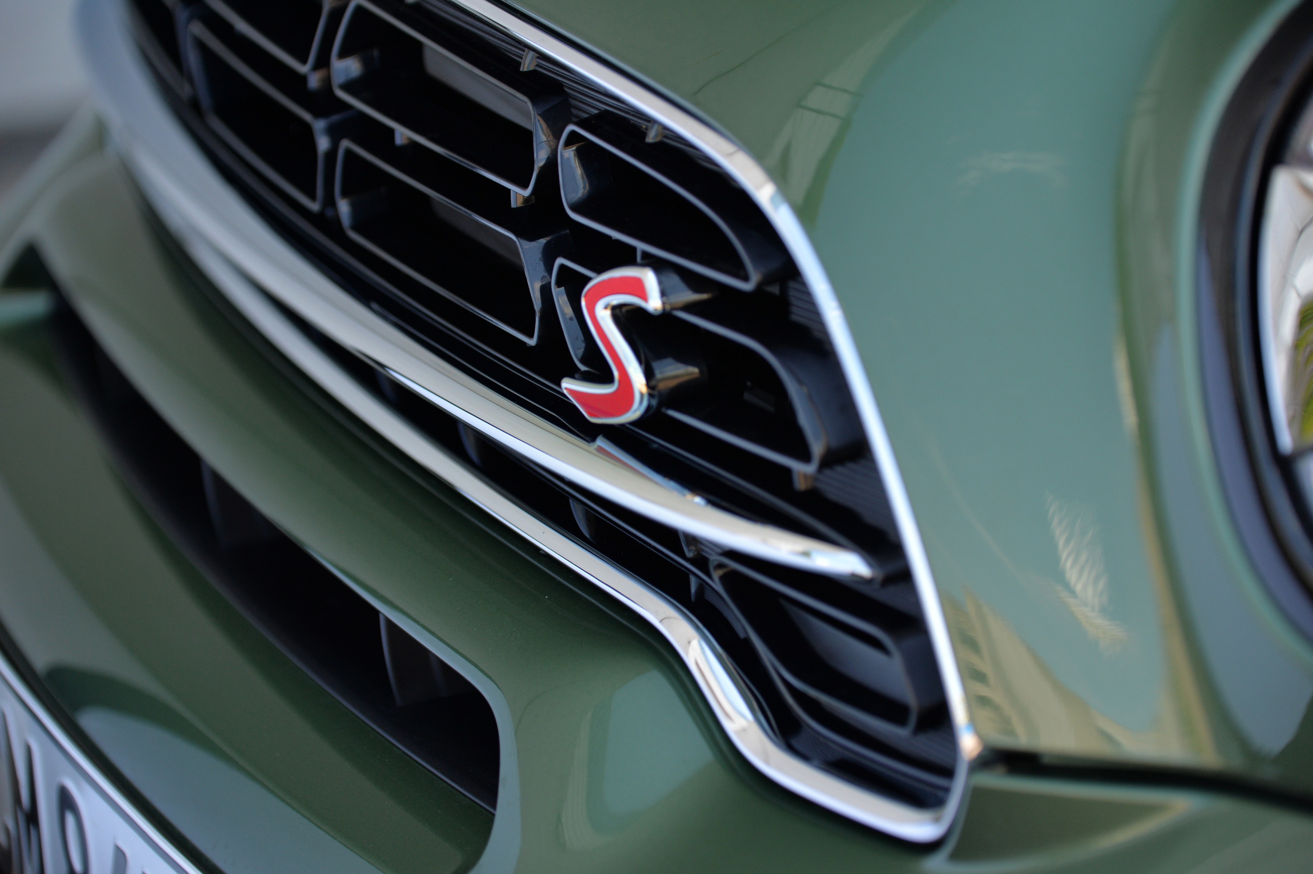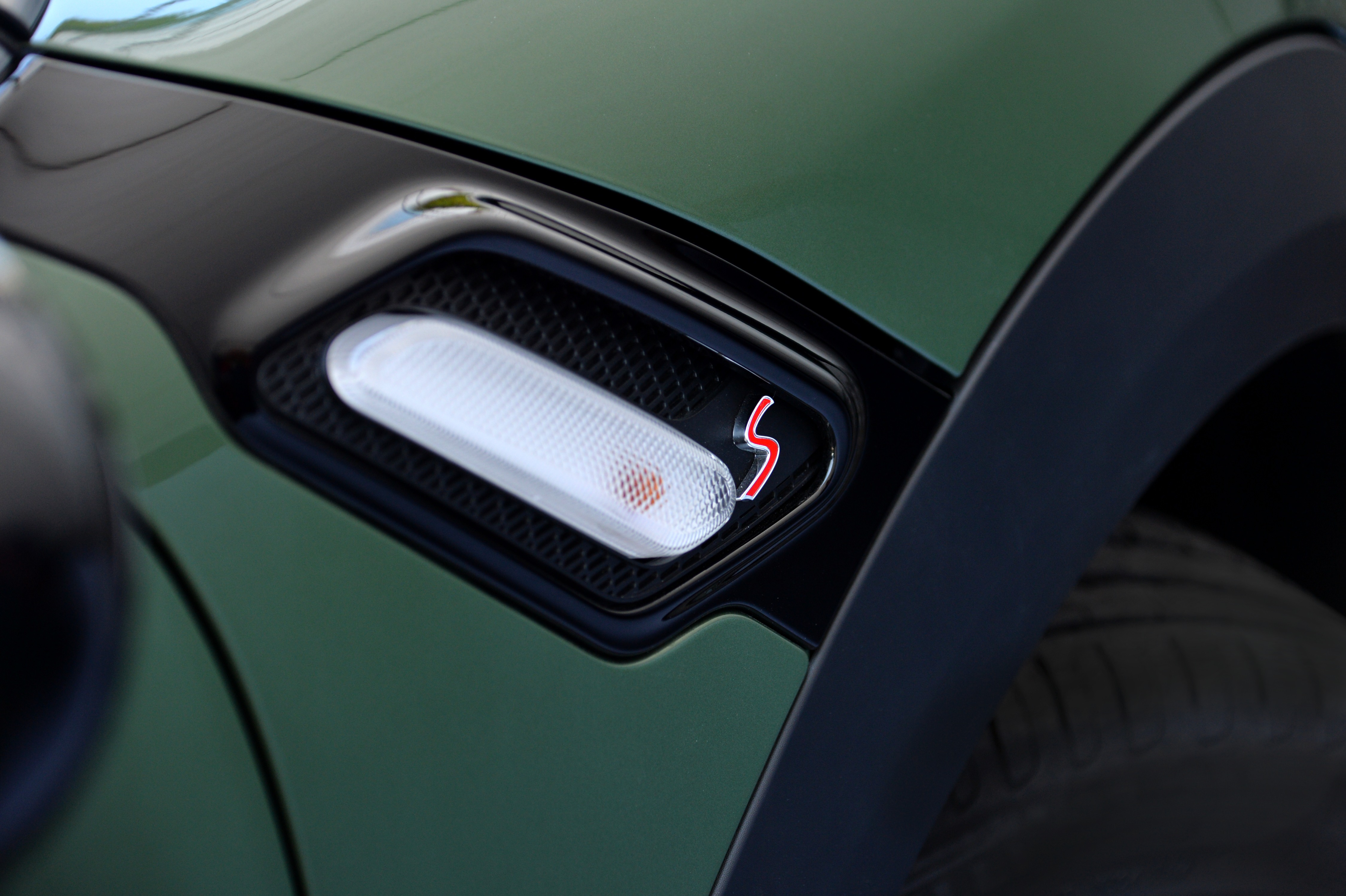 In the new MINI Countryman, both model-specific and hallmark brand elements are given additional emphasis. The upright front section instantly conveys a powerful presence, while a newly designed structure for the characteristic hexagonal radiator grill now further underscores this impression. A horizontal radiator grille rib finished in chrome in the new MINI Cooper S Countryman along with a curved "S" in red now gives the front view a clear, purist expression to ensure instant recognition. The front section of the new MINI John Cooper Works Countryman features a red radiator grille rib supplemented with the John Cooper Works logo. In all other model variants the radiator grille is now subdivided by two ribs. As in the case of the new MINI Cooper Countryman, it is finished in matt silver.